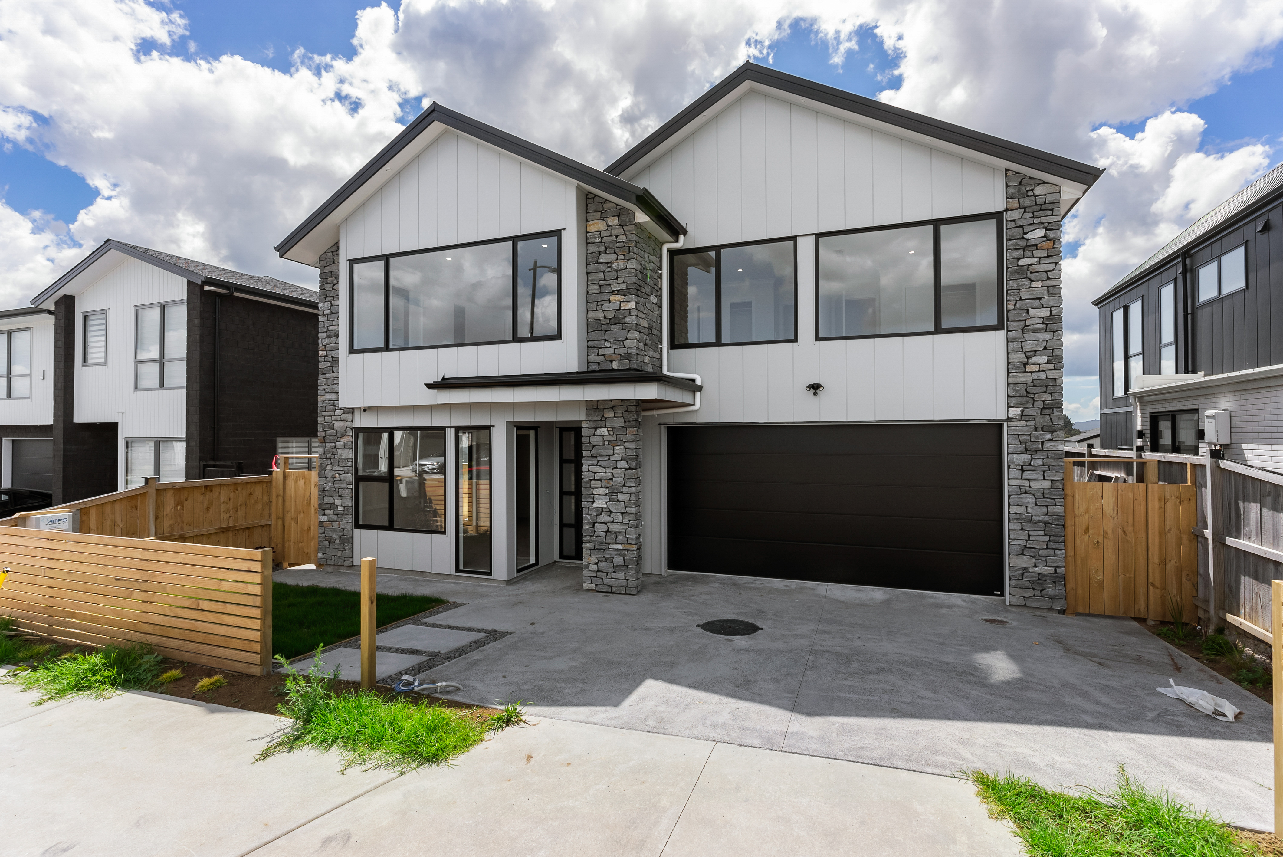 57 Michael Bosher Way is a modern Flat Bush residence featuring approximately 314 sqm of luxurious living on a 364 sqm section. With an estimated 4+ bathrooms and multiple living areas, the home is designed for seamless indoor-outdoor living. Contemporary finishes, open-plan kitchen and dining areas, and landscaped outdoor spaces create a harmonious environment for entertaining and relaxation. Completed in 2021, this residence combines modern architecture, high-end finishes, and thoughtful layout for a refined lifestyle.